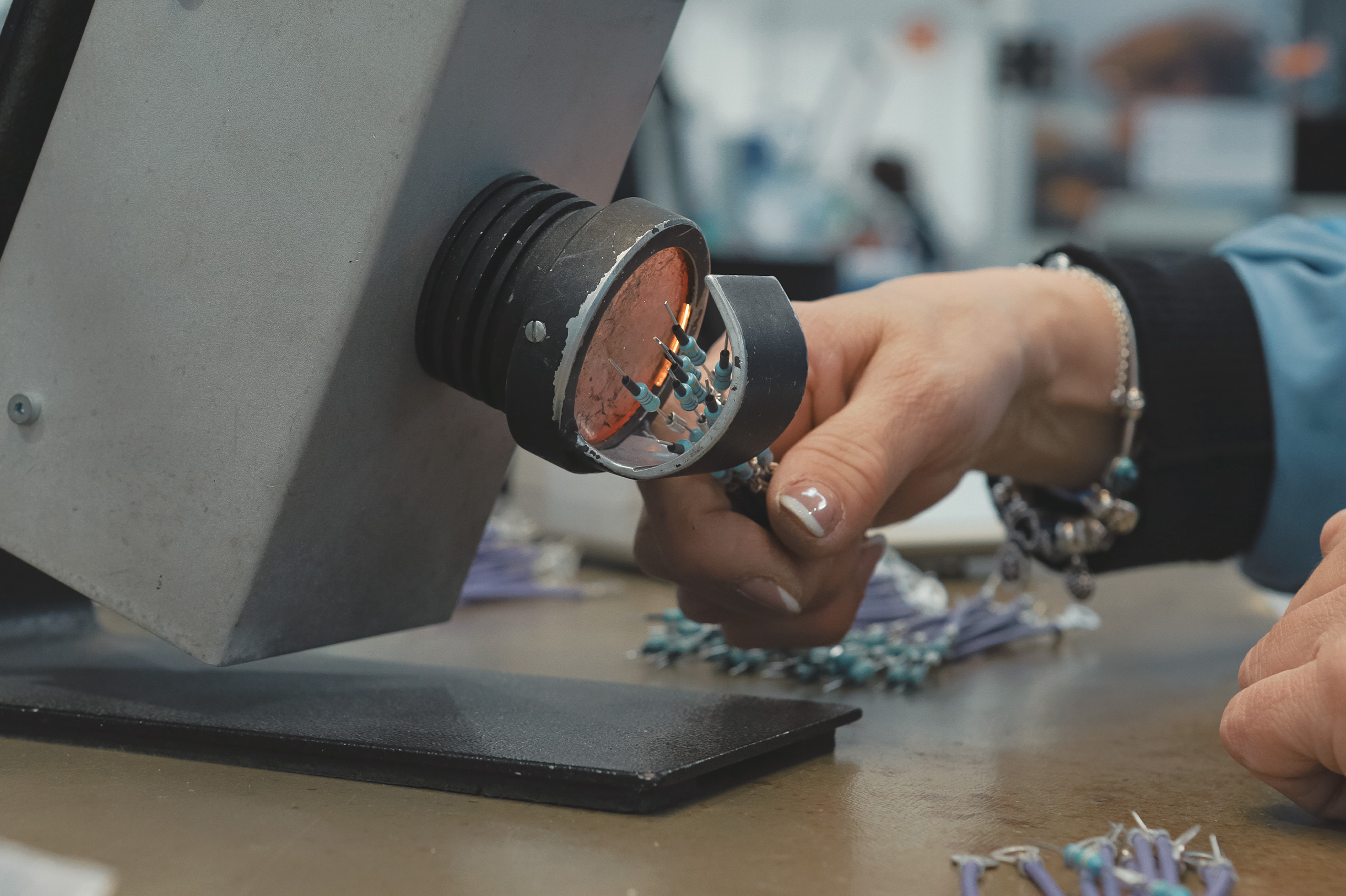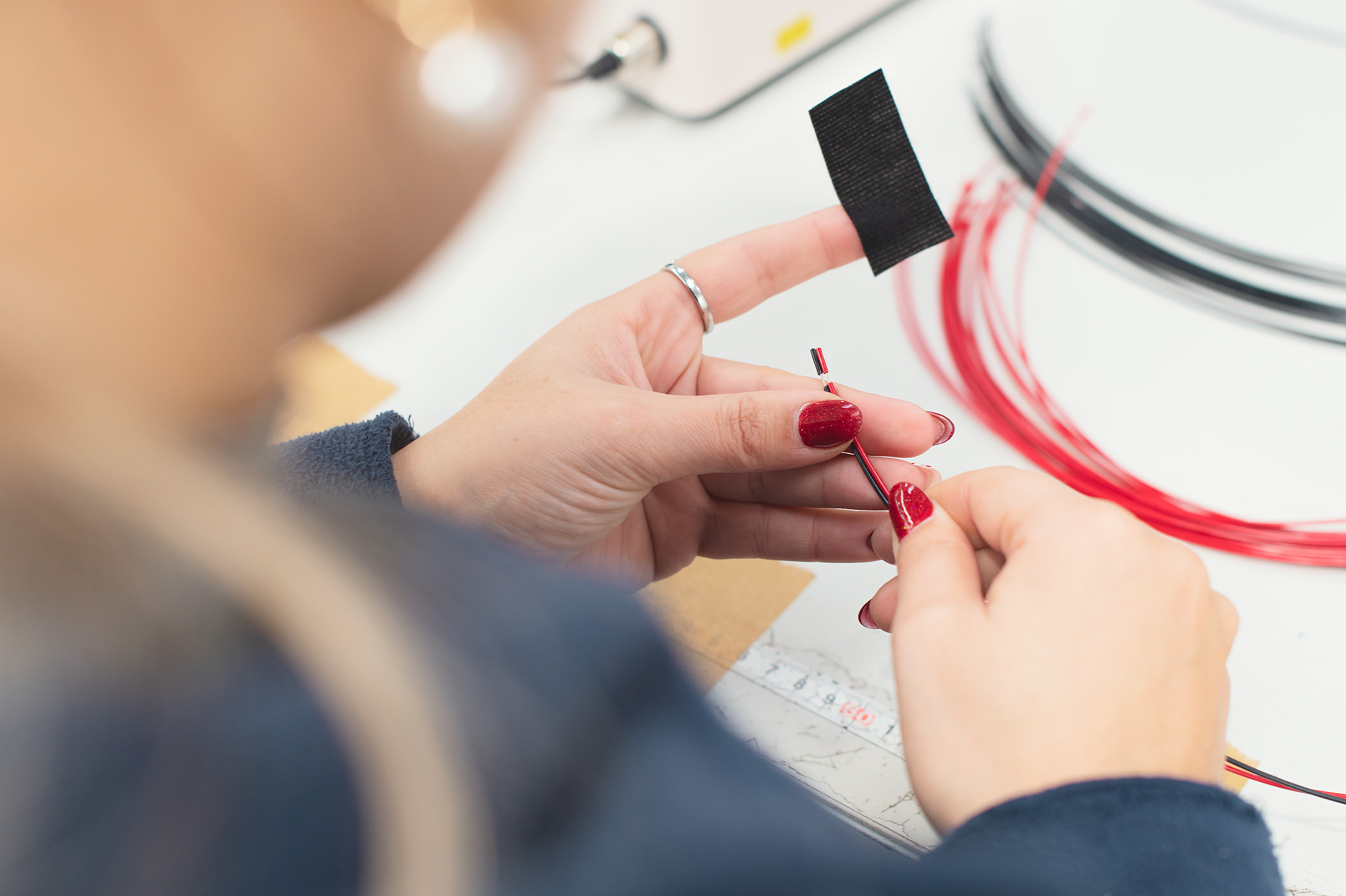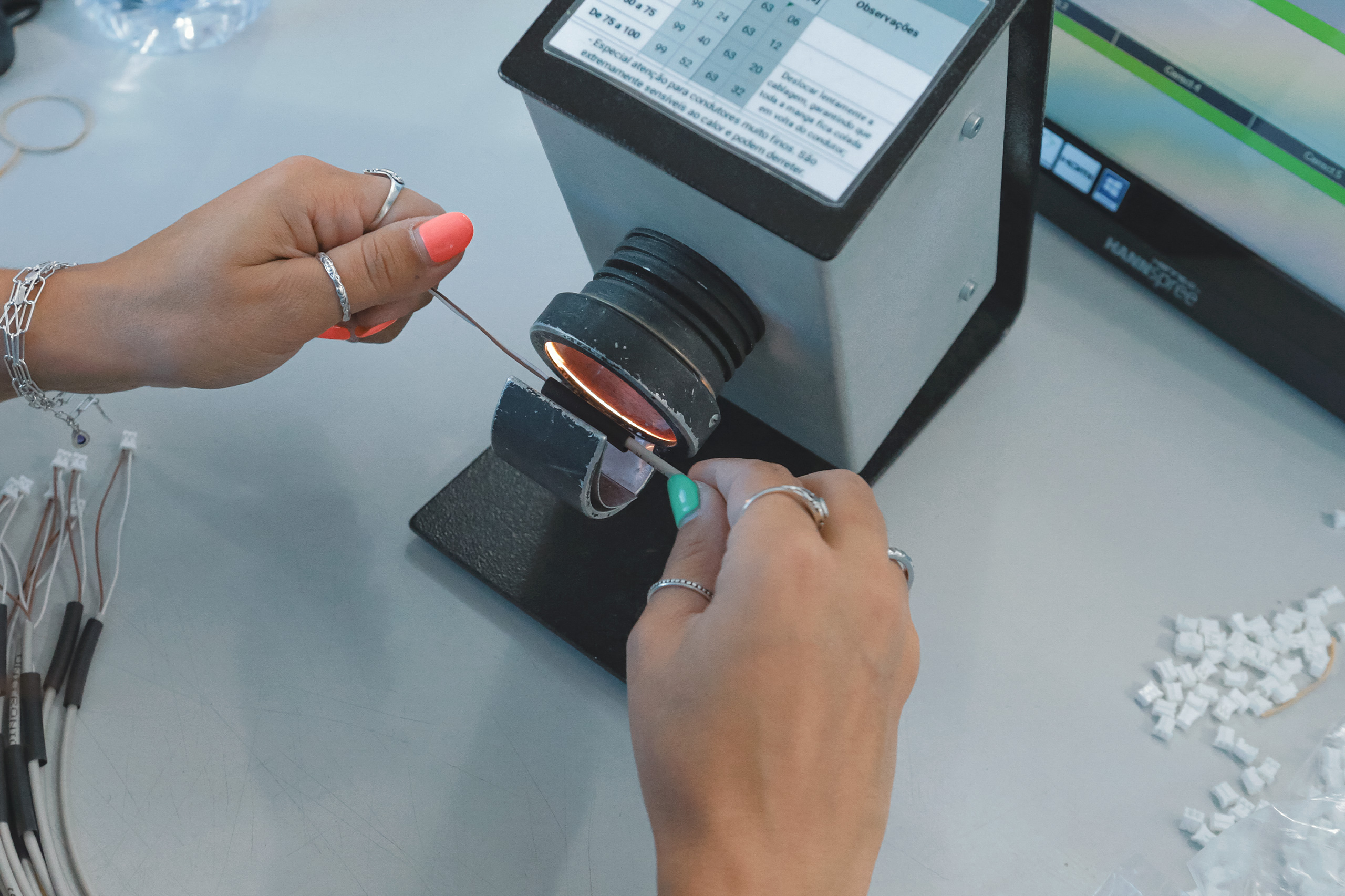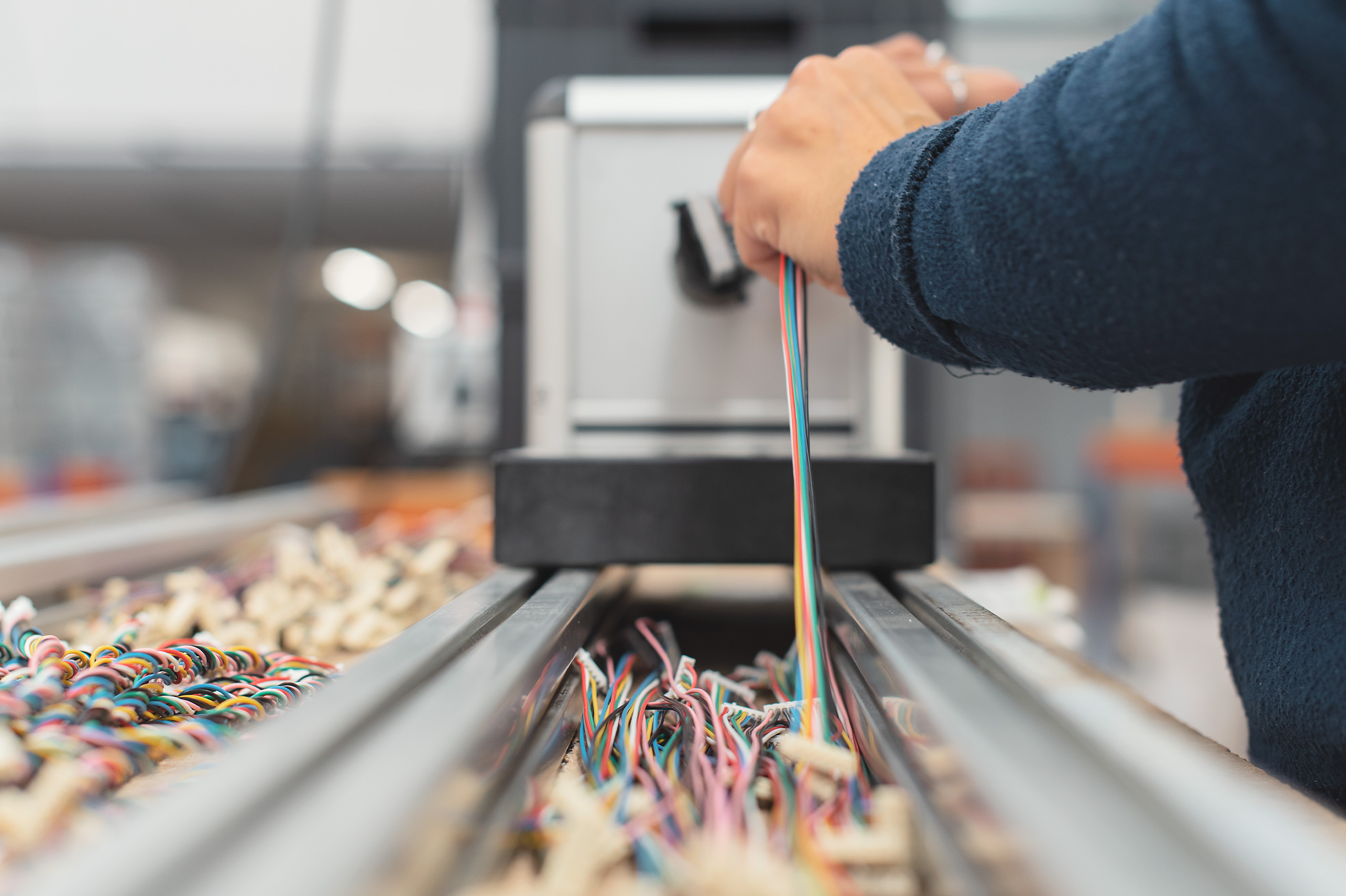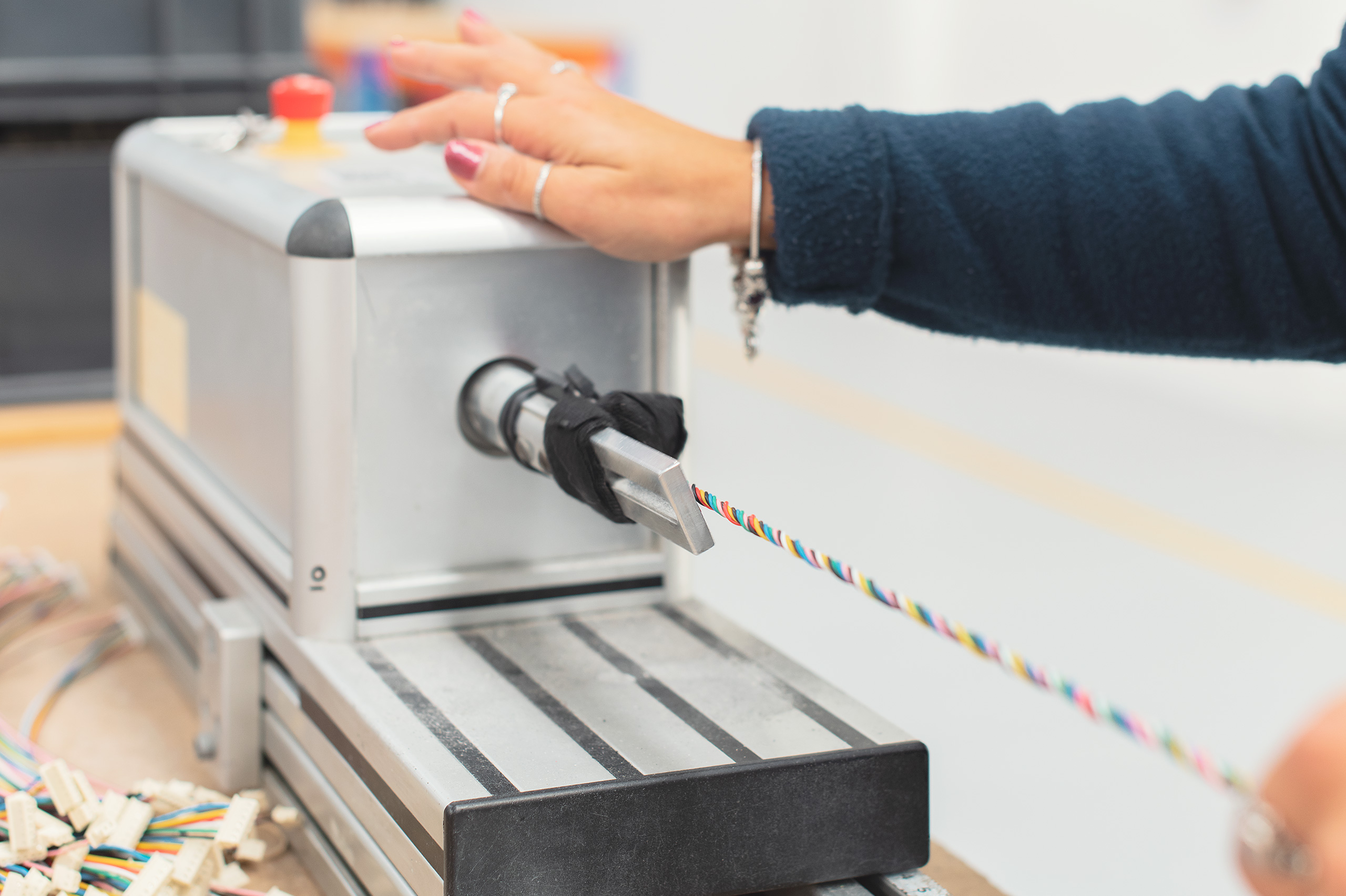 Possuímos ainda máquinas de entrançamento com regulação do número de voltas, velocidade e aceleração, bem como sistemas de envolvimento em fita adesiva.